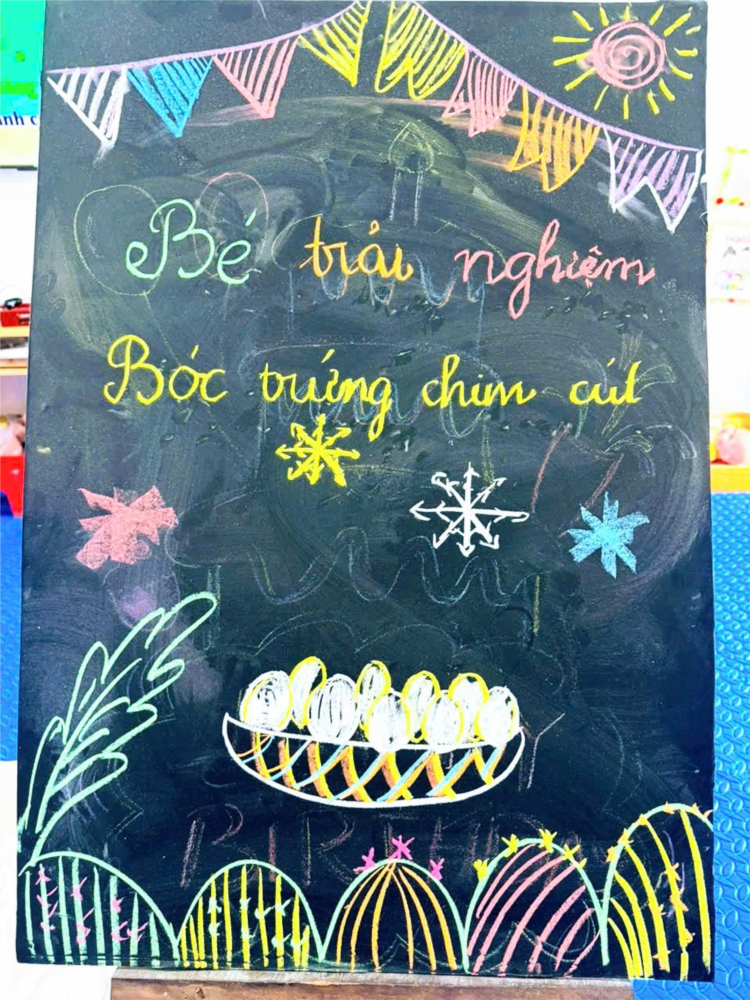 Trong hoạt động học trải nghiệm trên lớp, các em bé lớp 4B1 đã được làm quen và khám phá về cách bóc trứng chim cút cùng cô giáo. Cô giáo giới thiệu đặc điểm của quả trứng, hướng dẫn trẻ quan sát, nhận biết kiểu dáng, màu sắc và cách bóc sao cho nhẹ nhàng, không làm vỡ trứng.