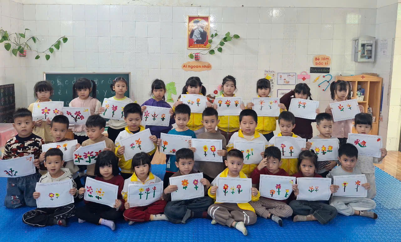 Các bé đã tự tay làm những bông hoa nhỏ xinh, gửi gắm vào đó những lời chúc ngọt ngào dành tặng bà và mẹ. Những nụ cười hồn nhiên, ánh mắt háo hức của các con đã làm cho hoạt động trở nên thật ấm áp và đáng nhớ.