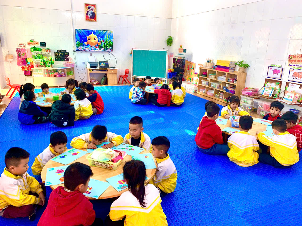 Các bé lớp 5A2 vô cùng thích thú khi được tiếp cận với ứng dụng công nghệ AI thông qua chuyên đề phát triển thẩm mỹ ở tiết “xé dán đàn cá”. Nhờ AI, các bé được xem những hình ảnh minh hoạ sống động, màu sắc đa dạng và đoạn mô phỏng đàn cá bơi lội rất tự nhiên, giúp trẻ có thêm hứng thú và ý tưởng sáng tạo. Trong quá trình hoạt động, trẻ chủ động lựa chọn màu giấy, tự xé dán và sắp xếp bố cục theo cảm nhận thẩm mỹ của mình. Sự kết hợp giữa công nghệ và nghệ thuật đã mang đến trải nghiệm mới mẻ, kích thích khả năng quan sát, sáng tạo và tư duy hình ảnh, giúp trẻ tự tin hơn trong việc thể hiện ý tưởng của bản thân.
