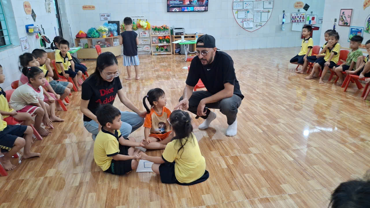 Các bé còn được rèn luyện kỹ năng nghe – nói thông qua các hoạt động giao tiếp đơn giản: chào hỏi, giới thiệu bản thân, đếm số, hay trả lời những câu hỏi ngắn. Nhiều bé trở nên tự tin hơn, mạnh dạn nói Tiếng Anh và thể hiện khả năng của mình trước lớp.