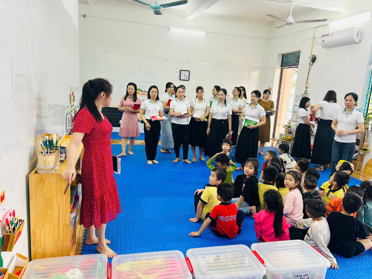 Trong quá trình đánh giá, các nhóm lớp đã thể hiện sự sáng tạo, linh hoạt trong việc thiết kế, bố trí không gian mở, phong phú về học liệu, gần gũi với trẻ. Các khu vực hoạt động trong và ngoài lớp được sắp xếp khoa học, tận dụng nguyên vật liệu sẵn có, đảm bảo an toàn, thẩm mỹ, thân thiện và khuyến khích trẻ tích cực tham gia các hoạt động trải nghiệm.