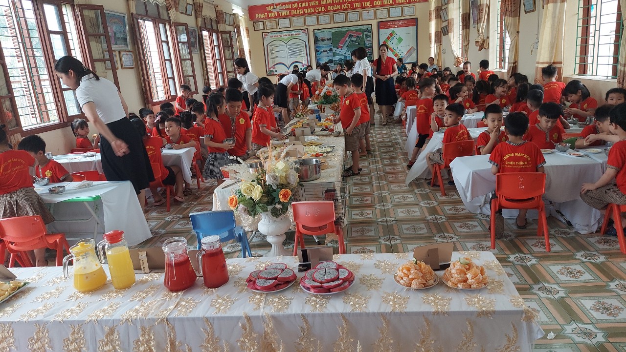 Trường mầm non Chiến Thắng xây dựng ngân hàng thực đơn năm học 2024 – 2025 căn cứ vào số tiền thu hộ, chi hộ của phụ huynh, với mức tiền ăn là 27.000đ/trẻ/ngày, vào nhu cầu dinh dưỡng của trẻ lứa tuổi mầm non cân đối theo khuyến nghị của Tổ chức y tế thế giới WHO, được phối hợp đa dạng, phong phú các loại thực phẩm với nhau để cung cấp đủ các chất dinh dưỡng cho trẻ, đồng thời tận dụng sự bổ sung tương tác lẫn nhau giữa các chất để nâng cao giá trị dinh dưỡng của các loại thực phẩm, cũng như tránh những loại thực phẩm kị nhau gây ngộ độc thực phẩm, do tất cả các chất dinh dưỡng đều cần thiết cho cơ thể trẻ ở lứa tuổi mầm non, mà một loại thực phẩm không thể cung cấp nhiều loại dinh dưỡng. Nhà trường xây dựng thực đơn cho trẻ 2 tuần liên tiếp không trùng lặp, trẻ độ tuổi nhà trẻ ăn 2 bữa chính, 1 bữa phụ; trẻ độ tuổi mẫu giáo ăn 1 bữa chính, 2 bữa phụ, và được thay đổi theo mùa, theo tuần cho trẻ .