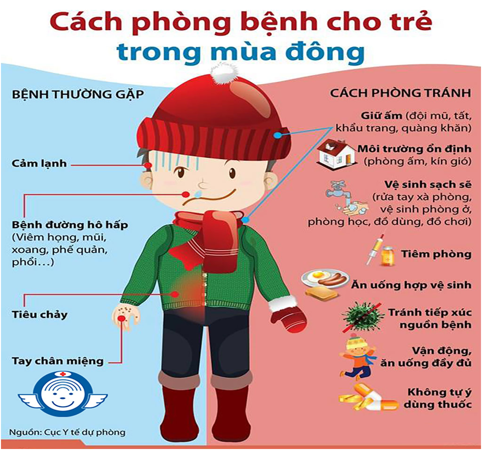 Một số dịch bệnh thường gặp trong mùa đông như: Sốt vi rút, cảm cúm, ho viêm họng, viêm phế quản,..., đặc biệt là trẻ em, nhất là trẻ ở lứa tuổi mầm non, lứa tuổi mà sức đề kháng của trẻ còn non yếu, khiến các bậc phụ huynh vô cùng lo lắng.