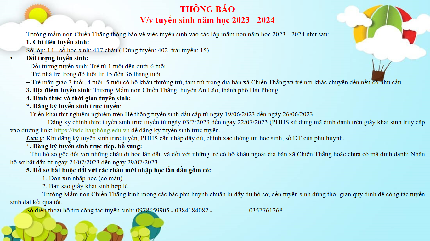 - Phụ huynh nhập chính xác thông tin số điện thoại thông báo, Email để nhận được các thông báo tuyển sinh.