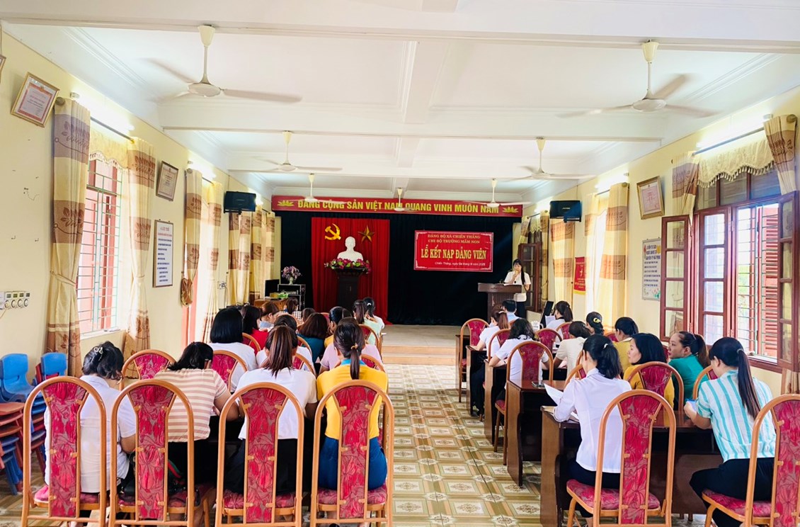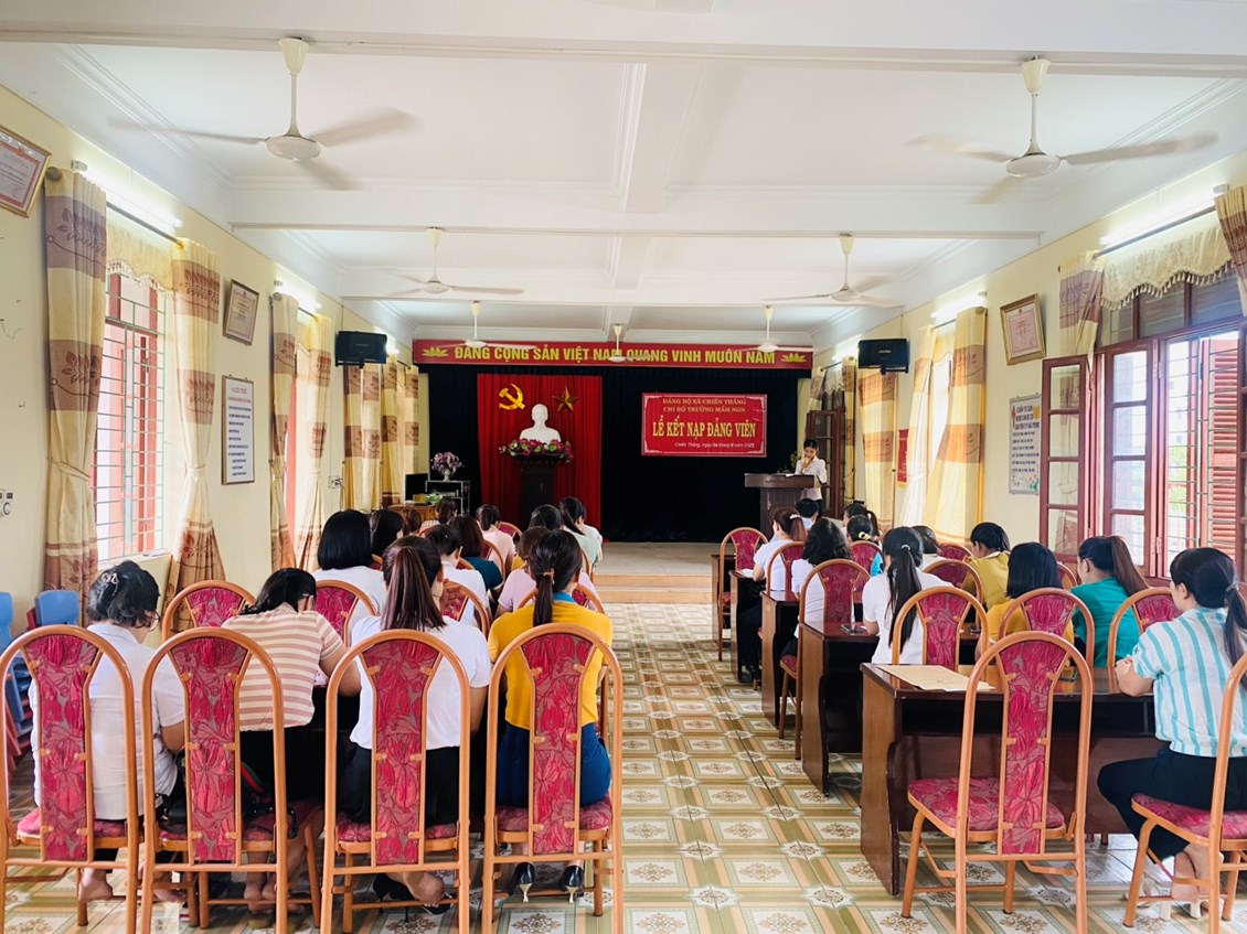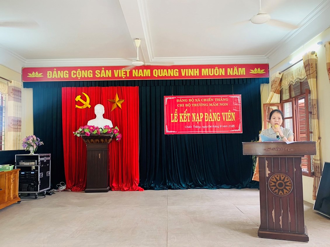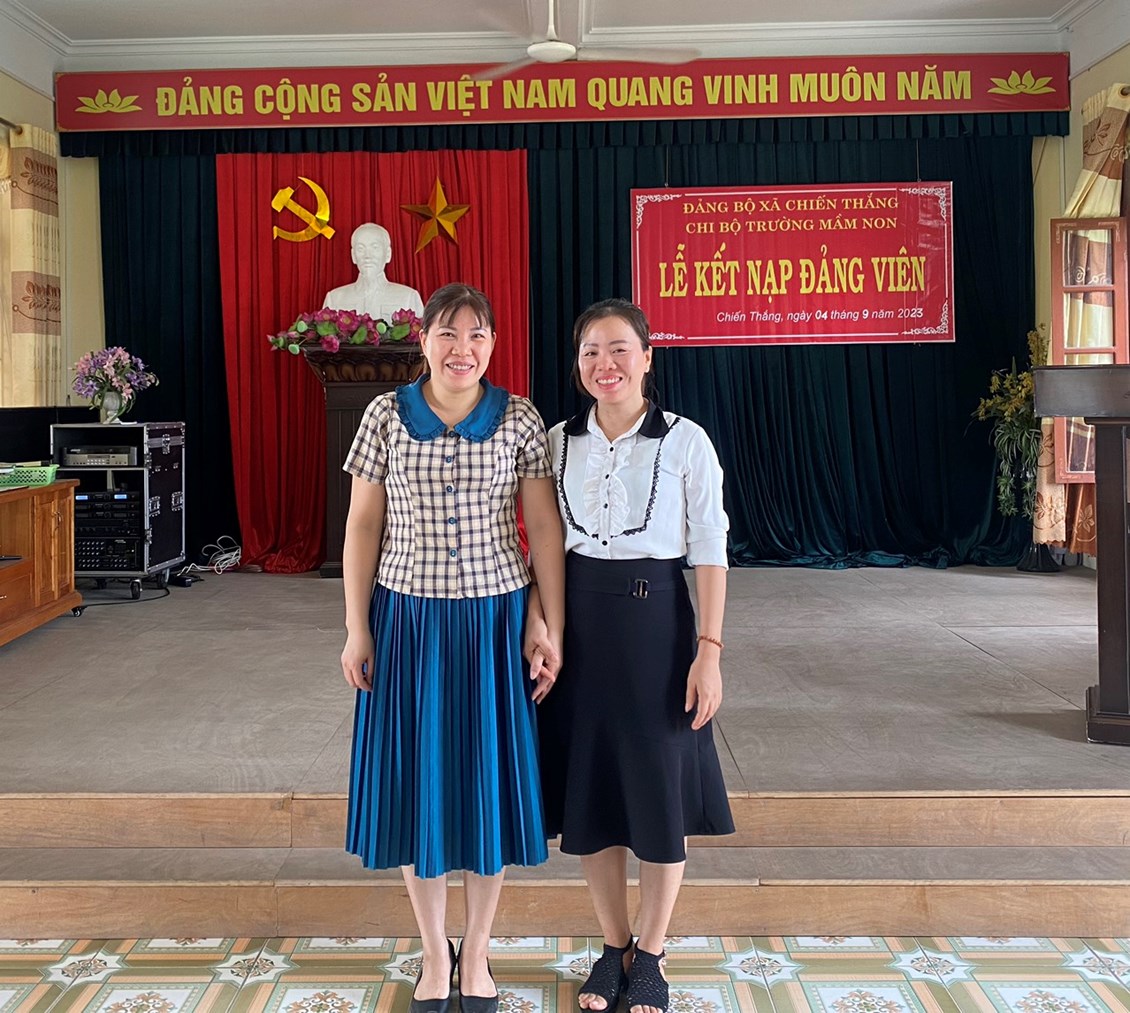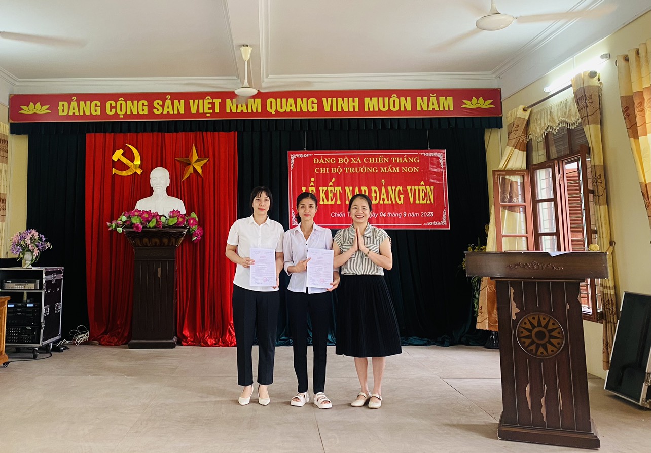 Hòa chung không khí chuẩn bị đón chào năm học mới 2023-2024, sáng ngày 4/9/2023, Chi bộ trường Mầm non Chiến Thắng tổ chức kết nạp Đảng cho 2 đ/c Nguyễn Thị Huyền Thanh và Nguyễn Thị Yến Hoa.