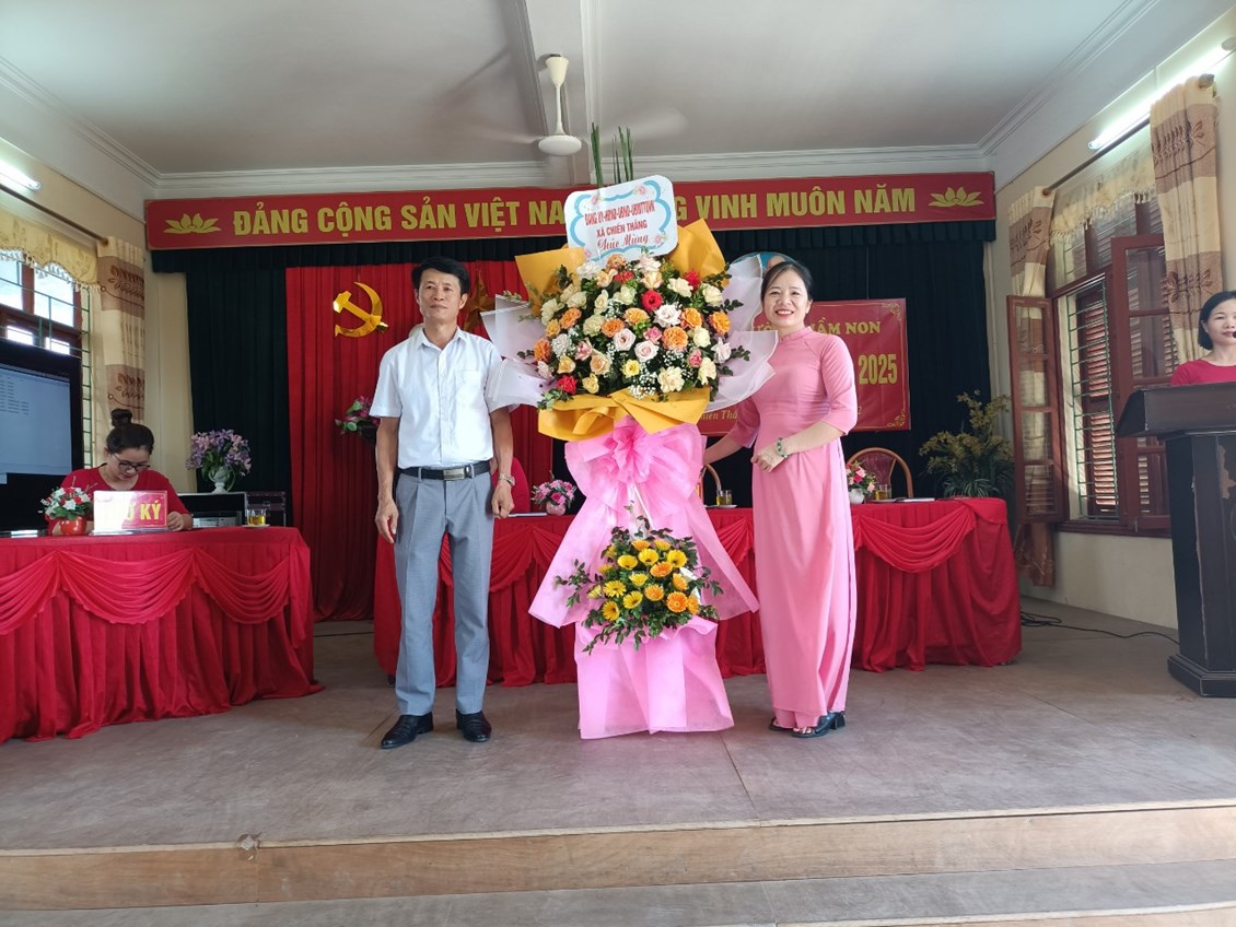 Đồng chí Bùi Văn Quân - phó bí thư Đảng ủy tặng hoa chúc mừng đại hội