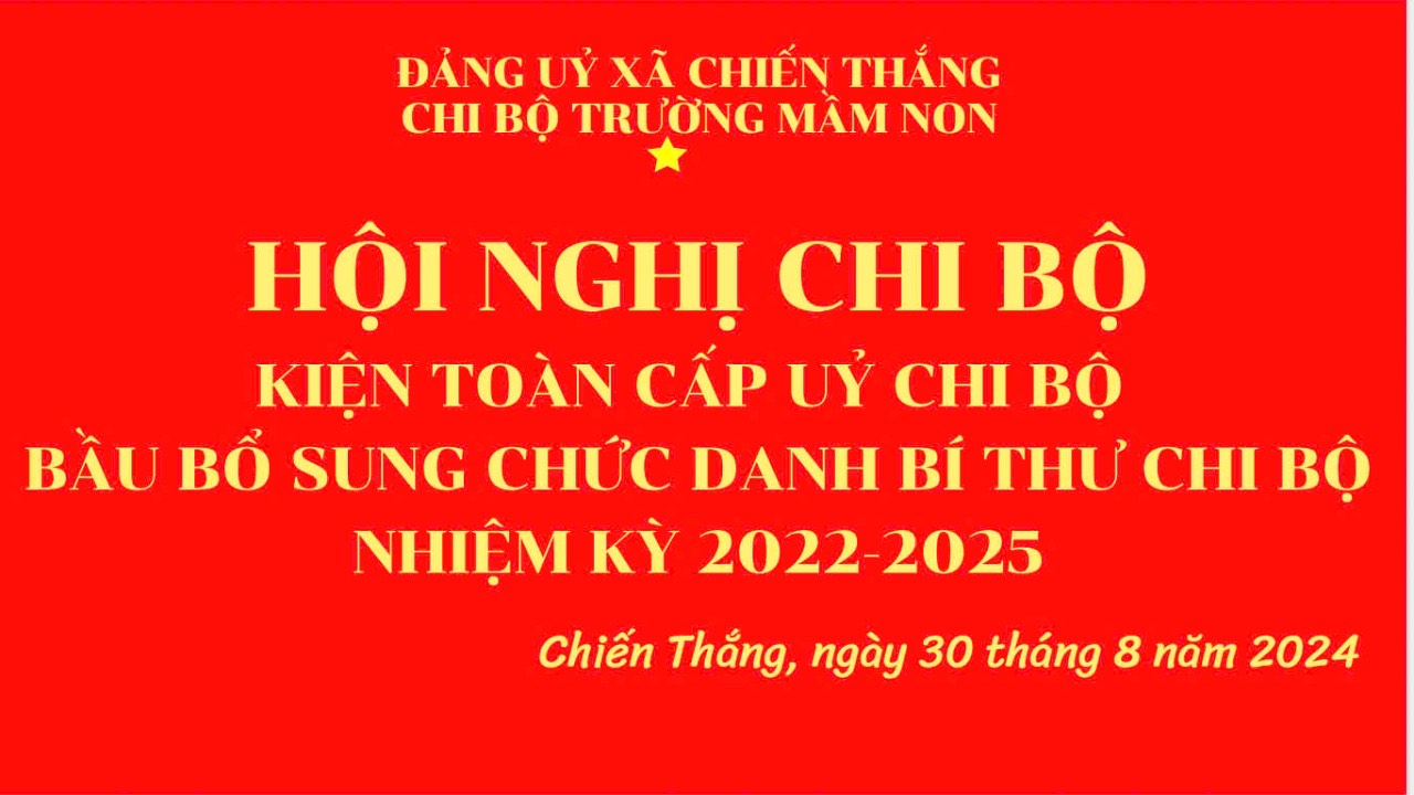 Chiều ngày 30/8/2024, Chi bộ trường Mầm non Chiến Thắng tổ chức hội nghị kiện toàn bổ sung chi ủy, Bí thư chi bộ nhiệm kỳ 2022-2025.