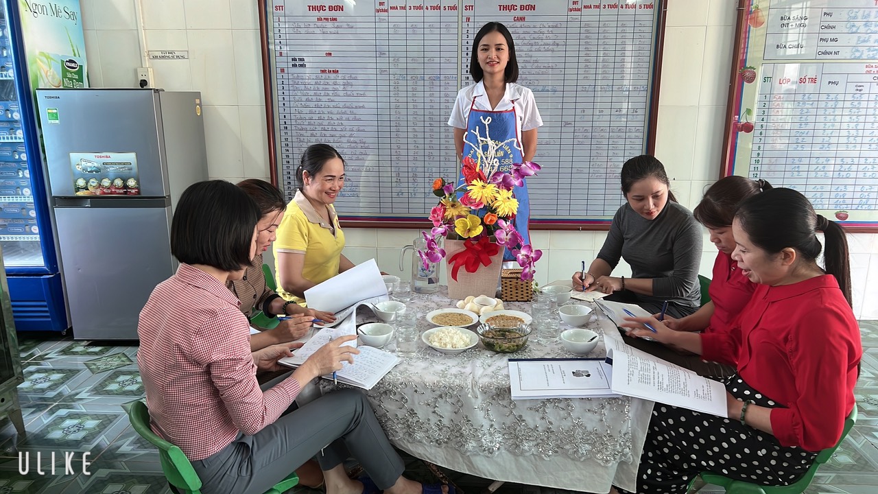 Với đội ngũ đã có nhiều năm kinh nghiệm nên thực phẩm được các cô lựa chọn rất tươi ngon và đều có sẵn tại địa phương. Dưới bàn tay khéo léo của các cô cộng với quá trình chế biến đảm bảo đúng quy trình vệ sinh an toàn thực phẩm đã trở thành những món ăn ngon, đầy đủ chất dinh dưỡng và phù hợp với lứa tuổi mầm non. Vì độ tuổi này hệ tiêu hóa còn non nên các món ăn phải đạt những yêu cầu như: đảm bảo về số lượng, chất lượng, thức ăn phải nhỏ, mềm, gia vị vừa ăn, sản phẩm hấp dẫn nhằm kích thích trẻ ăn ngon, ăn hết suất.