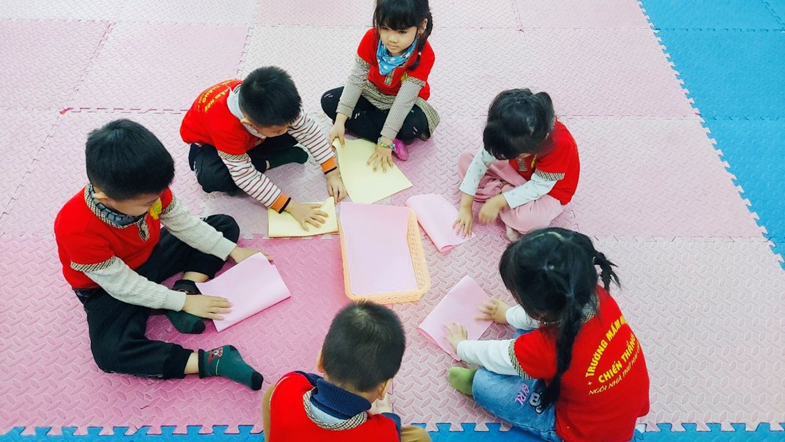 Cô Phạm Thị Lan và các bé lớp 4B4 với giờ học " Gấp máy bay"