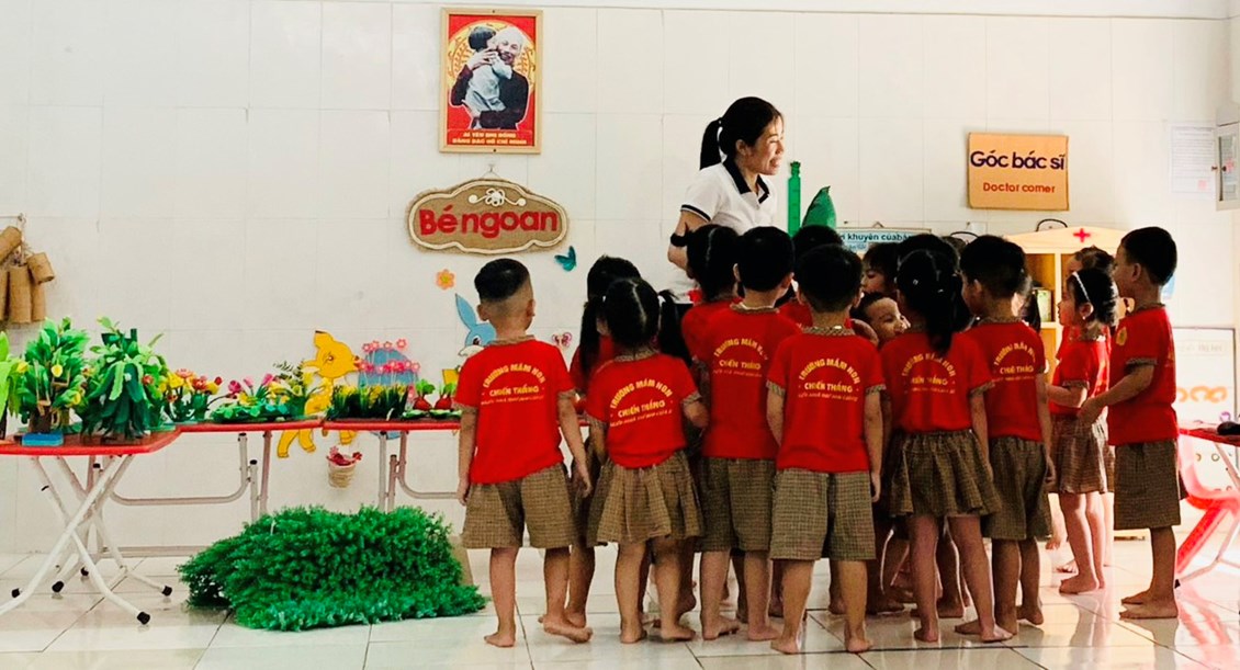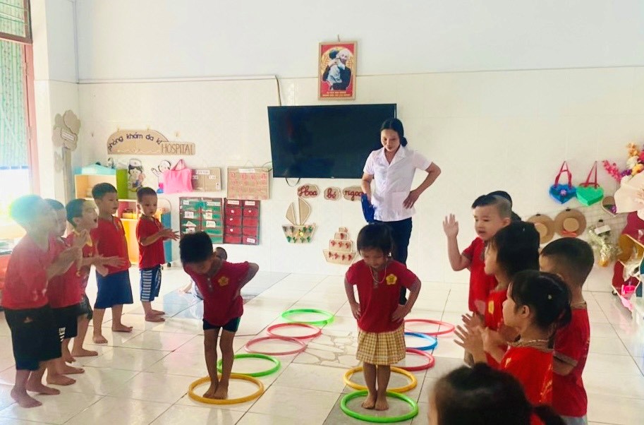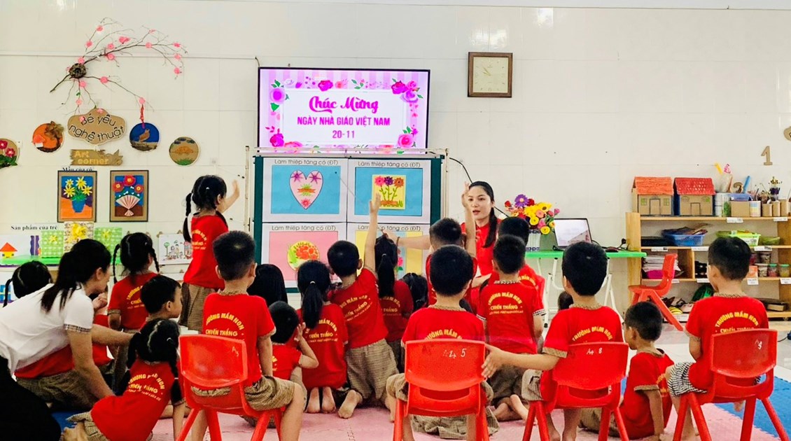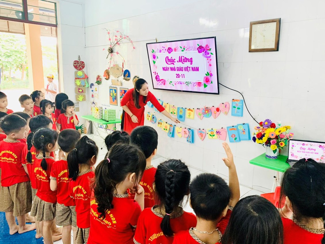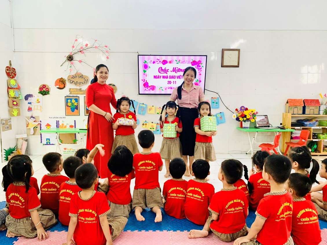 Hòa chung không khí sôi nổi, phấn khởi của ngành giáo dục, tập thể giáo viên, cô nuôi trường Mầm non Chiến Thắng tham gia tiết dạy tốt, giờ ăn ngon để thiết thực chào mừng " Kỉ niệm 41 năm ngày Nhà giáo Việt Nam". Các hoạt động diễn ra sôi nổi, mỗi tiết dạy đều có sự sáng tạo, đổi mới riêng; Giáo viên tổ chức các hoạt động “Học bằng chơi, chơi mà học” theo quan điểm “giáo dục lấy trẻ làm trung tâm”, ứng dụng linh hoạt công nghệ thông tin vào các hoạt động dạy và học. Các giờ dạy được các cô chuẩn bị chu đáo, đồ dùng đồ chơi đẹp nên đã tạo hứng thú cho trẻ, trẻ tích cực tham gia các hoạt động. Thi đua cùng giáo viên trên lớp, các cô nuôi với những đôi bàn tay khéo léo đem hết tâm huyết của mình tham gia thi nấu các món ăn ngon, hấp dẫn,đủ chất để trẻ ăn ngon miệng, hết suất, đảm bảo nhu cầu dinh dưỡng, an toàn vệ sinh thực phẩm.