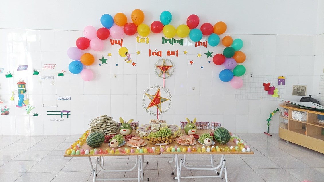 Để buổi Tết Trung Thu thật thành công và ý nghĩa với trẻ, các cô giáo và nhân viên trong nhà trường dành rất nhiều thời gian, tích cực chuẩn bị mọi điều kiện đề cho các con có buổi Tết thật vui vẻ. Các bé được tập văn nghệ chào mừng Tết trung Thu, được cùng các cô và các bác phụ huynh chuẩn bị mâm cỗ Trung Thu đầy màu sắc ấn tượng với đầy đủ các loại bánh kẹo, hoa quả, đèn lồng, bóng bay ....