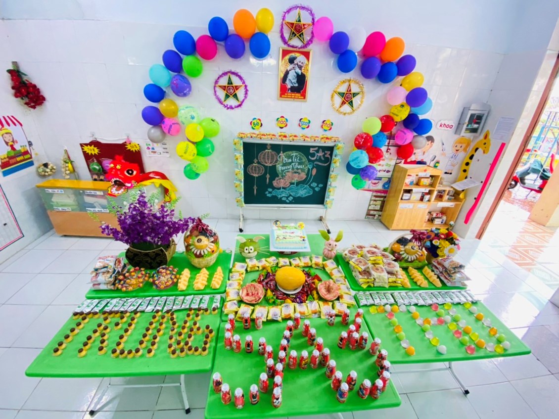 Lớp nhỏ nhất trong trường đã chuẩn bị xong mâm cỗ Trung Thu vô cùng đặc sắc.