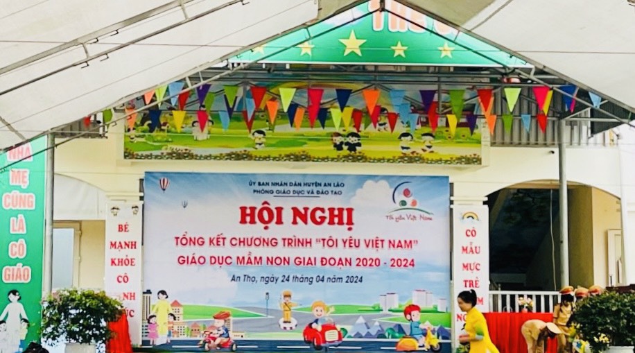 Thực hiện nhiệm vụ năm học; Thực hiện Kế hoạch số 368/KH-PGDĐT ngày 09/10/2023 của Phòng GD&ĐT về việc triển khai Chương trình Tôi yêu Việt Nam trong các cơ sở GDMN, ngày 24/4/2024, tại trường MN An Thọ, Phòng GD&ĐT tổ chức HN tổng kết Chương trình Tôi yêu Việt Nam giai đoạn 2020-2024.