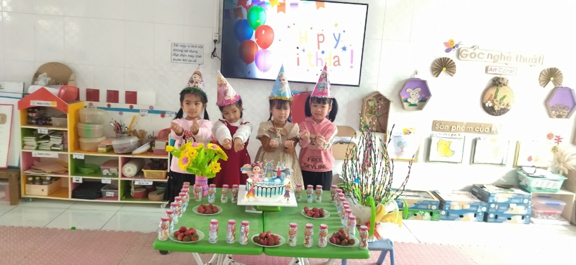 Một buổi sinh nhật vui và ý nghĩa với bé không chỉ là việc chuẩn bị bánh kẹo, hoa quả mà còn là việc tạo cho trẻ một không gian với những hình ảnh, màu sắc thật lung linh, rực rỡ mà điều này thì các cô giáo ở trường mầm non luôn sẵn sàng giúp gia đình để các bé có được cảm giác yêu thương, ấm áp trong ngày đặc biệt của chính mình. Bên cạnh đó, các cô giáo còn cùng các bạn nhỏ ở lớp biểu diễn các tiết mục văn nghệ chúc mừng sinh nhật, tổ chức các trò chơi vui nhộn giúp ngày sinh nhật của bé thêm hứng thú