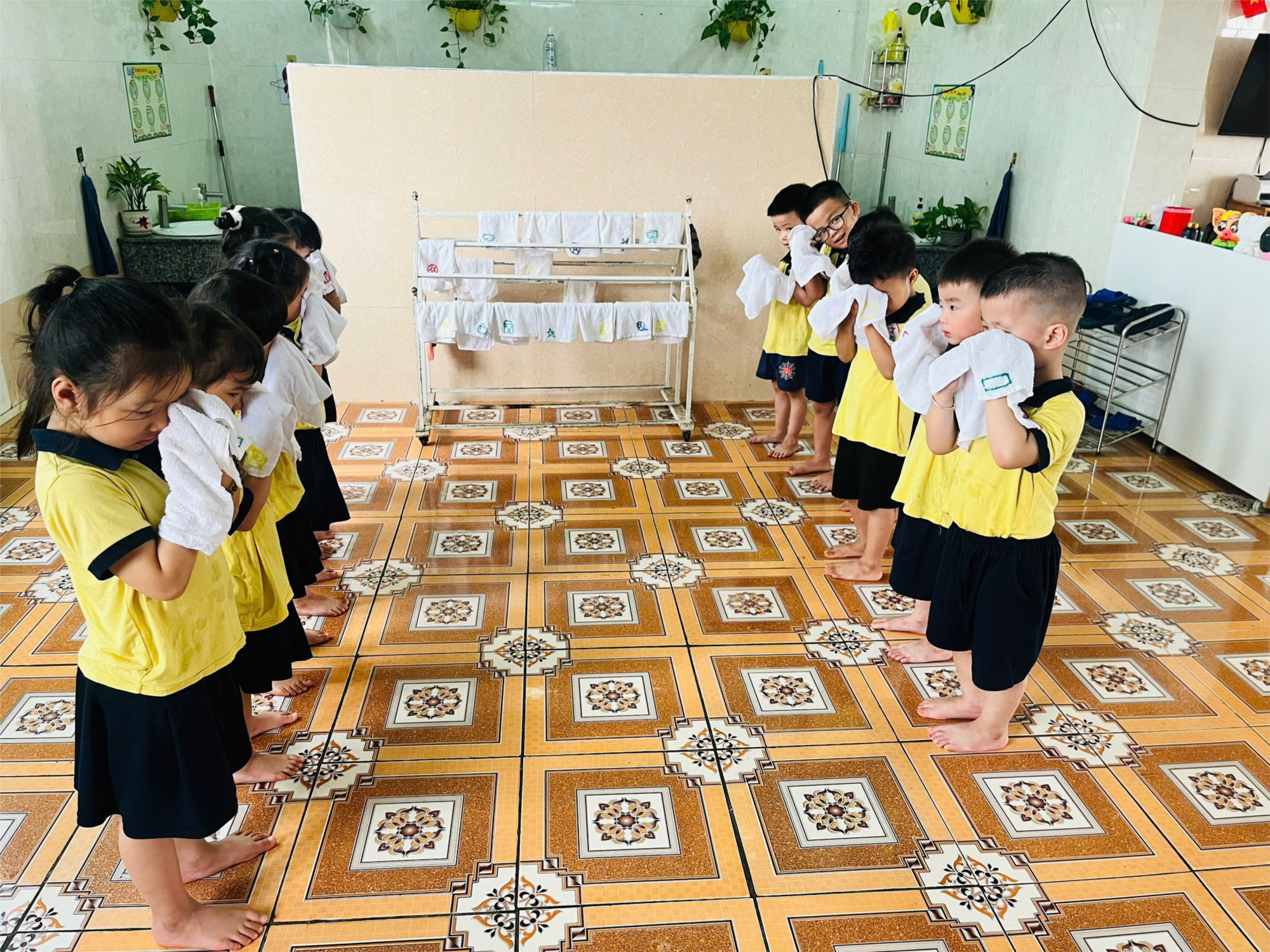 👶 Các hoạt động chăm sóc vệ sinh cho trẻ được thực hiện đầy đủ: